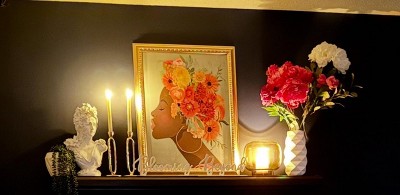 I love this wall art. She is vibrant, fun, classy meets boho! I love it against my wallpaper.