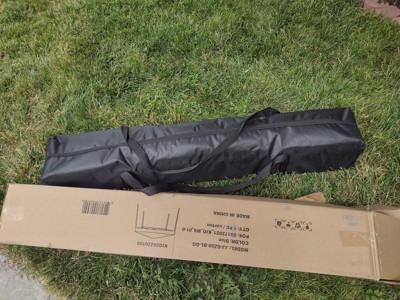 [This review was collected as part of a promotion.] This was very easy to set up, took about 15 minutes while reading instructions. Next time we set it up it will take less time. This comes with stakes and rope for those windy days when you might need it. Top folds up and fits back in the back easily. Chairs are nice and sturdy, a bit stiff to fold back up, but they are new. The table is excellent, heavy duty, folds out easily and is sturdy. The zippered carrying case is very easy to use and holds the tent and poles nicely. Everything is very nice quality.