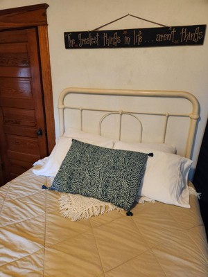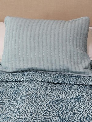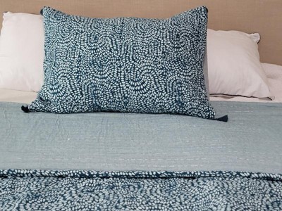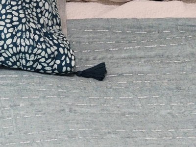 This sham from Threshold is absolutely beautiful. The beautiful teal blue colors are bright and vibrant. The sham is set off with tassels on each corner. This line also offers a matching quilt can be purchased separately. The material is lightweight and very soft. Perfect upgrade for the warm months ahead.