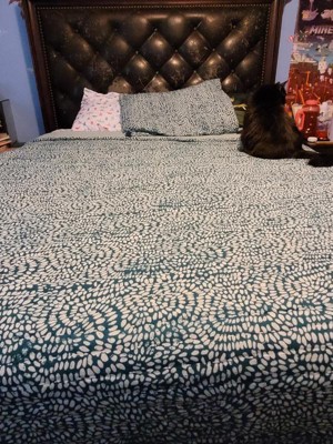 It's very cool that it's reversible. You've got a subtle striped pattern on one side and the teal swirl on the other. The sham seems a little big for a standard pillow size, so there is some slack in the sham. I would prefer it was more fitted to a standard pillow. It does have a pocket to tuck the pillow in on the end of the sham, to hide the pillow on both sides. It is soft to the touch, and the teal color is nice. Switch up the reversible sides for whatever mood you're in!