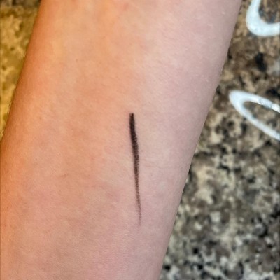 I lightly swirled the brush in the product and tried it on my hand. Nothing appeared. I swirled harder and tried again. Still nothing. So I really crammed the brush down in there and scraped, pushed and jabbed at it, and managed to get a faint dark line. Kind of like using a kid's black crayon, on your skin. Why does this product even exist? I couldn't get enough on to bother removing it.