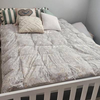 [This review was collected as part of a promotion.] I am really impressed with this down comforter, The pattern and the colors are very pretty for a modern paisley and they go well with my decor. I think it works well for girls and for adults, I have it now in my daughter’s bedroom with pink walls and it looks really elevated. The quality of this comforter is really nice, it is dense and puffy with a really soft handfeel and the quilted pattern in the comforter helps keep the stuffing evenly proportioned. I received an incentive to write this review.