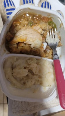 [This review was collected as part of a promotion.] This turkey dinner with stuffing and mashed potatoes was good but not great. The turkey and stuffing was flavorful and the turkey was tender and flakey. The potatoes were not it though. They were thin and lacked flavor. I ate the turkey and stuffing but the potatoes went to the trash, which was probably for the best because at 40% of your daily recommend sodium intake... I could afford to noy eat all of this.