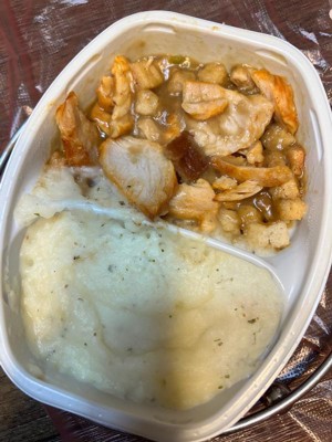 [This review was collected as part of a promotion.] Tastes like a frozen dinner meal. Not bad by any meals but pretty bland and needs some more flavor. Didn’t like the mashed potatoes. They tasted like boxed potatoes