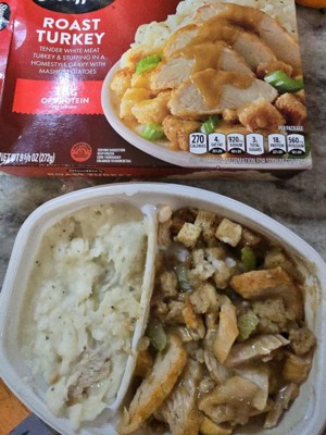 [This review was collected as part of a promotion.] This tastes way better than what it looks like! Its not too dry and the gravy is good. I wish they would separate the turkey from the stuffing and veggies like in the pic tho. And that it was bigger slices of turkey.