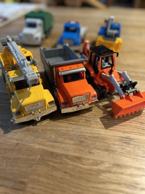 - 3-piece Set: Comes with the Micro Dump Truck, Micro Crane Truck, and Micro Backhoe Loader.
