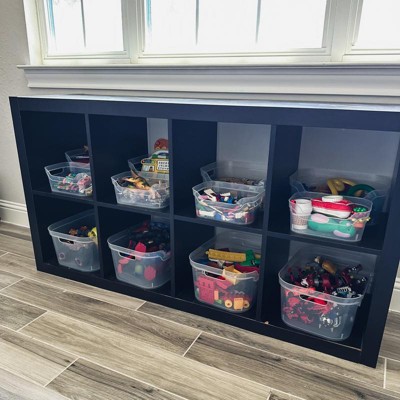 These open bins are an organization must have that fit a surprising amount of stuff and I can fit two bins per cubicle which helps my kids keep their toys organized! My playroom is now less cluttered but these bins would work well in other areas such as closets, pantry, laundry and more.