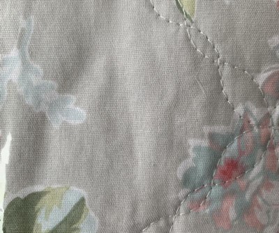 [This review was collected as part of a promotion.] This is a lovely quilt! The pattern is really pretty, has a vintage look to it and I like that the floral design is subdued with pale colors. I use it on top of my down comforter on my bed and love the extra weight it adds when I sleep. Material is high quality and soft and I'm very happy with it!