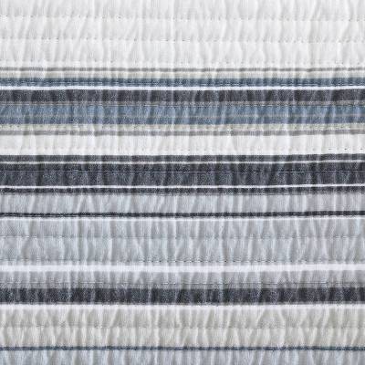 - This Reversible Quilt Features A Horizontal Stripe Print In Tones Of Blue On An Ivory Ground
