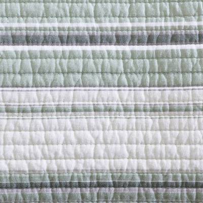 Stone Cottage Fresno bonus quilt set is perfect on its own or as a layering piece. This reversible quilt features a horizontal stripe print in tones of green on an ivory ground. This quilt is 100% cotton, with a cotton (80%)/polyester (20%) filling is lightweight and easy to care for. The corners of the quilt are rounded to match the sham, both edges are finished with a fabric binding. The set includes 1 quilt, 2 shams and 1 decorative pillow cover (1 sham for the twin set). Machine washable, for easy care