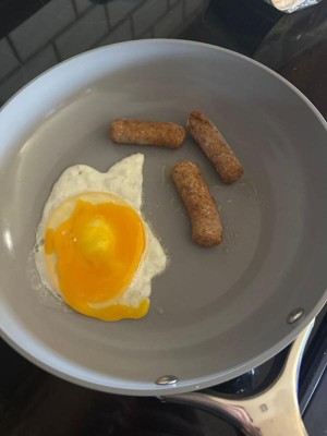 I’ve been using this frying pan for a few weeks now and I’m really impressed. It heats up quickly and cooks evenly, so my eggs/pancakes/chicken come out just right every time. The nonstick surface actually works – food slides right out and cleanup is easy with just a soft sponge. The handle stays cool and the pan feels sturdy but not too heavy. Overall, I’d definitely recommend this pan to anyone who cooks regularly at home.”