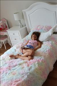 [This review was collected as part of a promotion.] This is such a cute and comfortable addition to a little girls room! The rainbow color is soft and and it has a matching pillow cover to complete the set. I asked my daughter if she agreed and she wanted to keep it for herself! The faux fur is soft, as well and it makes a great way to settle down with a book or to watch a show on TV.