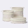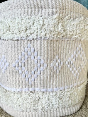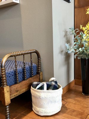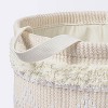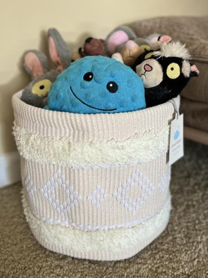 Keep blankets, toys and baby clothes contained with this Tufted Fabric Medium Round Storage Decorative Basket from cloud island™. This round storage bin features a cream woven fabric construction that's adorned with tufted detailing for fun textured style. Designed with attached handles for easy portability, this decorative storage basket is great for a nursery or bath area. Plus, it can be spot cleaned for easy care.