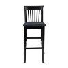 Elevate your kitchen or home bar with the sleek and stylish Torino Black Craftsman Counter Stool. Crafted from sturdy solid rubberwood and featuring a rich black finish, this counter stool is designed to complement a variety of décor styles. The mission-style backrest and padded seat, covered in easy-to-clean faux leather, ensure both comfort and convenience. Whether you're entertaining guests or enjoying a casual meal, the curved back and footrests provide ample support, making this stool ideal for long periods of use. With a 31-inch seat height, it pairs perfectly with bar counters ranging from 41 to 43 inches tall.