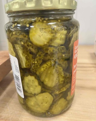 These good and gather pickles are a new favorite in our house. The tang and crispness are perfect. The size and thickness of each pickle chip is perfect for topping burgers and sandwiches. I enjoy the amount of sweetness, it is not overpowering at all. The jar is packed full. I will definitely be purchasing these pickles over and over. In my opinion, they are better than the popular national brand. I received an incentive to write this review.