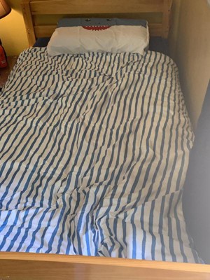 [This review was collected as part of a promotion.] This is an adorable set. Not too childish for my 10 year old but still fun. The sheets are almost silky like and he says he does not get hot at all when he sleeps. The comforter is plush and lightweight with a simple striped design. I’m hoping the white stays looking clean and crisp. He loves everything about this set!