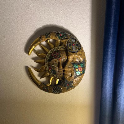 FC Design 11" Mosaic Celestial Sun and Moon Sculpture Wall Decor Art Hanging Sun and Crescent Decoration - Tan