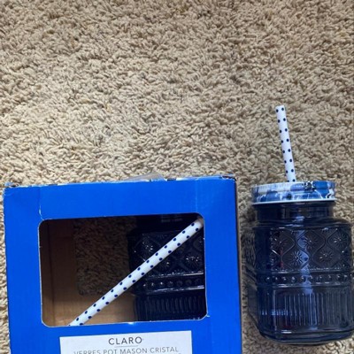 16oz 2pk Crystal Claro Mason Jar Glasses Purple - Godinger Silver: Lead-Free, Includes Lid & Straw, Crystal Material