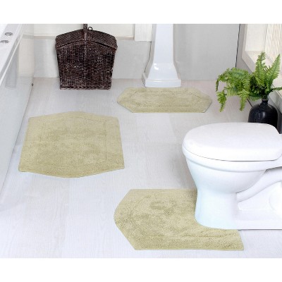 Set of 3 Bell Flower Collection Turquoise Cotton Floral Pattern Tufted Bath Rug Set - Home Weavers