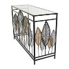 - •This wide rectangular console table for home features a minimalist open design with eye-catching leaf details and 4-legged base for extra stability