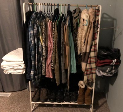 [This review was collected as part of a promotion.] I love this garment rack. Setup was extremely easy and it holds so much! It's functional but it doesn't take up too much room. I use it to set up my outfits for the week and it makes it so easy. I can even put my shoes on the bottom to go with the outfits!