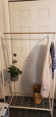 [This review was collected as part of a promotion.] This white IRIS Large Metal garment and accessories rack is very chic. I really like the aesthetic of it. It very trendy and useful. It was very easy to assemble and follow directions to set up. I like the wood like detail on the hanging bar it goes well with the minimal look. Its sturdy and well made. Would definitely recommend it.