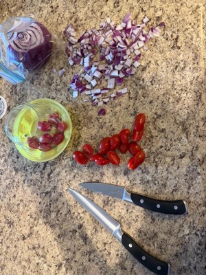 [This review was collected as part of a promotion.] Holy smokes was the package easy to open! I crushed it and one side came right open. It was so easy to get them out of the packaging. No scissors needed 😂. They have some weight to them! They were made well. The small paring knife is the perfect size. The handle curves in your hand. They'll fit in a knife block. Or hang on a magnetic knife holder. They look easy to clean. The blade is flat not serrated so you'll be able to sharpen.