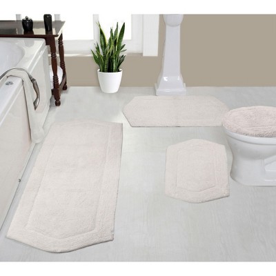 Set of 4 Bell Flower Collection Ivory Cotton Floral Pattern Tufted Bath Rug Set - Home Weavers