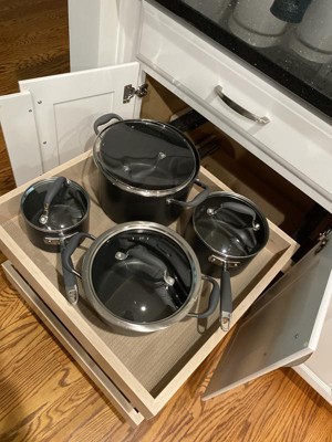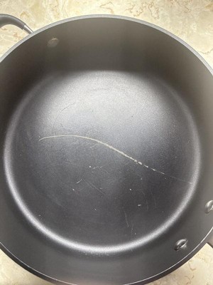 This cook wear set starts off cooking beautifully nothing sticks to the surface it cleans with ease. However be diligent with stacking them. Just one slight scratch and the coating inside the pan will come off. I noticed it while washing the pan. Which means some of the coating was in the food that we ate (im sure it was harmless ,right) as i look thru all the rest of the set every single one has this same issue. Bad form Anolon you branded this as hard anodized not coated … Dont be fooled by the two…My wife purchesed this set from Macys after i disagrees with her pick. . I only use my Wearever set ive had for 12 years . .