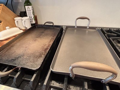 When I realized I finally had to retire my original Analon cookware set from 2005 there was no question but that I would buy the same thing again. I did go for a new color (my originals were gray and I went bronze) just to change it up. Amazing product all around. In the last 20 years they’ve added measurement lines - what a cool new feature! I don’t love the shape of the new handle on my griddle - much larger so harder to work around for pancakes and harder to store. But other than that I continue to be thrilled! Photo of old next to new - it was time!