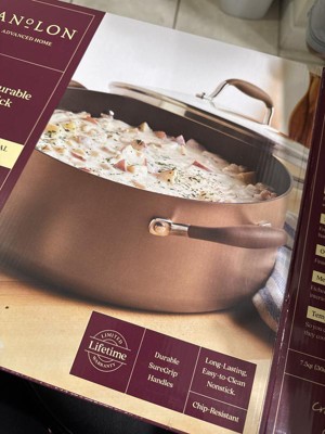 Anolon Advanced Home 7.5qt Covered Wide Stockpot Bronze: Nonstick Hard Anodized Aluminum, Gas & Electric Compatible