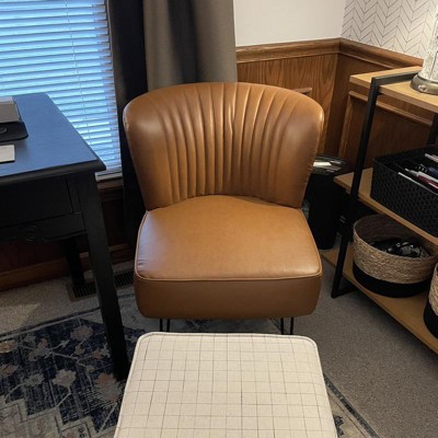 This chair just gives you a hug! I was real nervous to order since there were no reviews posted and it was 57% off, but these chairs did not disappoint! All you have to do is attach the legs. Color is true to image on website - I got the camel.