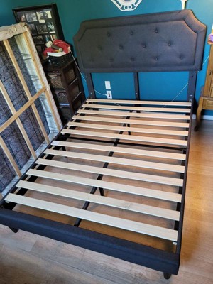 [This review was collected as part of a promotion.] I received the full size BIKAHOM Upholstered Platform Bed with Tufted Headboard in exchange for my use and honest review. It went together very well. All parts were there, safely packaged and in perfect condition. Very easy to assemble. It looks really nice in the bedroom, as you can see by my photo.