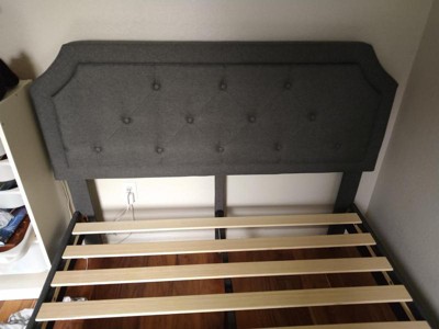 [This review was collected as part of a promotion.] Package was damaged but pleasantly surprised with contents. Love the headboard shape and neutral charcoal color. Simple enough to put together. Will update with photo when mattress arrives.