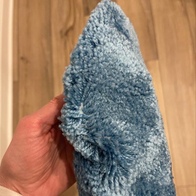Looks absolutely nothing like the picture. It’s not a dusty blue at all! Looks more like a cross between electric blue or ocean blue. I realize ocean and electric blue don’t necessarily go together in blue hues, but it would seem that the rugs have a typical rug effect that almost gives the impression of the ocean waves coming off toilet lid and in front of the sink and bathtub. It’s like in my kids Minecraft game. Like a block has been moved and the ocean is coming forth in my bathroom…. If the ocean was electric blue. Returned. Sorry I didn’t get a picture, but you’ll have to take my word for it. Or purchase and find out. Oh and the treading was already coming off of the rug in front of the sink seems cheaply made for $68 (on sale). Still on the hunt for a soft dusty blue