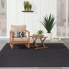 Designed for busy, active lifestyles, this black outdoor rug from the Nourison Essentials Collection is the ideal pairing of style and practicality. The simple, solid pattern is enhanced with subtle tonal variations and a surprisingly soft texture that’s equally suitable for any room inside the home. Place in any room as a standalone foundation for your décor or use as part of a layered rug look. Machine-made with a low-profile construction from easy to clean polypropylene yarns, this modern rug easily withstands heavy traffic and does not shed. Hand washable outdoors only: rinse with a hose and air dry.