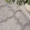 Ground your indoor or outdoor seating area in the stylish appeal of this outdoor rug from the Easy Care Collection. With a backdrop that showcases multiple flatweave styles, enhanced by a raised Moroccan trellis pattern, this contemporary rug adds an appealing sense of depth to your surroundings. Place it in your living room, dining room, entryway, or favorite outdoor space such as the patio, porch, or deck for an instant style boost. Machine-made from durable, low-shed fibers that are easy to clean, making this a great choice for all seasons spent outdoors.