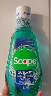 Scope Outlast Mouthwash is super refreshing! It gives you long-lasting fresh breath and kills bad breath bacteria effectively. The mint flavor is strong but not too harsh. Great for daily use!