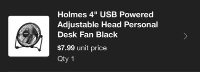 Holmes 4" USB Powered Adjustable Head Personal Desk Fan Black