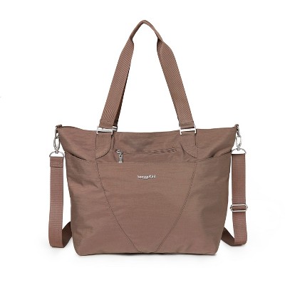 [This review was collected as part of a promotion.] I purchased the Everywhere Bag with RFID in the taupe/brown color. I received it last week August 2025. I love the color and the size, along with the side pouch to put my water bottle in. Extra plus on the bag is to be able to put it over my luggage handle, which helps at airports. So glad it came with the little wrist bag to put money and my passport in. I have about nine other baggallini bags in various colors and sizes. I have been carrying a baggallini for over 14 years. Love, Love, Love baggallini's.