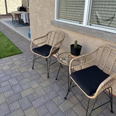 Love this nuetral Rattan Bistro set. Fits perfectly in smaller spaces & looks amazing. Pretty comfortable & sturdy. Was easy to assemble. Gives such inviting summer vibes, great to sit in while enjoying morning coffee.