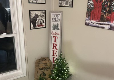 Set the holiday tone in your home with this Balsam fir holiday tree. With lifelike pine sprigs and a brown-hued base, this tree is a breath of fresh air. The two-tone green needles offer a realistic appeal. We think this would make an enchanting addition to your decoration! Product Features: Unlit 59 tips 2" wide tapered tips Medium profile tree Recommended for indoor use only No assembly required comes in one piece Tree cannot be removed from the rustic burlap base Dimensions: 24" high (including the burlap base) 18" base diameter (at the widest point) Material(s): PVC/metal/burlap Note: Branches are compressed for shipment, and need to be fluffed out upon arrival to look like the photo.