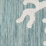 This decorative flatweave area rug features a creamy ivory background accented by palm leaves in a modern aqua blue. A sophisticated take on tropical style, this design perfect for welcoming guests in your entryway, living room or as a stylish detail on your outdoor patio. Made in Turkey from 87% Polypropylene/13% Polyester, this performance collection is Power Loomed to create subtle, naturally beautiful multi-toned detailed designs with a high-quality finish. The material is flatwoven, UV stabilized, fade resistant, durable and ideal for those high traffic areas such as your patio, deck, kitchen and living room making this the perfect indoor or outdoor rug. A fresh take on traditional area rugs, patterns range from tropical, coastal, contemporary and classic to seamlessly tie together the design of your home. Limiting exposure to rain, moisture and direct sun will prolong rug life.