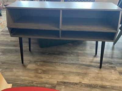 [This review was collected as part of a promotion.] This is a heavy/sturdy piece. It didn’t take long to assemble and I knew as soon as I got it open I was going to love it. It is the perfect shade of the modern gray that we are seeing everywhere and the mid century modern design is perfection! Ample space in the cubbies for some cute decorative touches and the drawers perfectly house your keys and mail when coming in the door. For such a simple piece it certainly is elegant and will be even more so when I locate the right accent piece to place above it. I have passed many times before on an entry table as it often looks dated, but honestly this upgraded the style factor of my room immediately. Would definitely recommend and am now obsessed with their entire line.