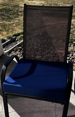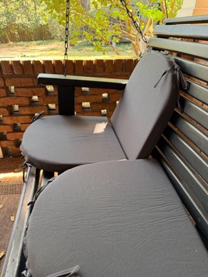 [This review was collected as part of a promotion.] These cushions are perfect for our patio chairs! The size fits great and they are pretty comfortable. I like this color, it shouldn’t stain as easily with how dark they are.