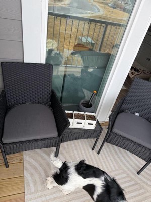 These are really cute. I love the texture and thickness of the fabric and can tell they'll wear well in outdoors. One complaint is the sewing of the ties. They broke almost immediately after attaching. Could be seen in and reinforced a little better. But as heavy as the cushions are- I'm not worried about them blowing away