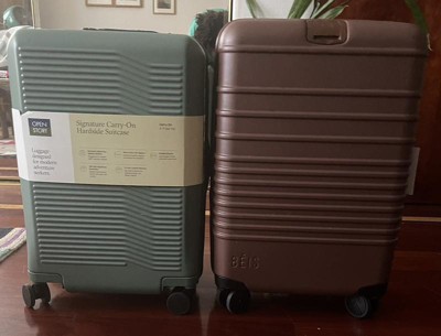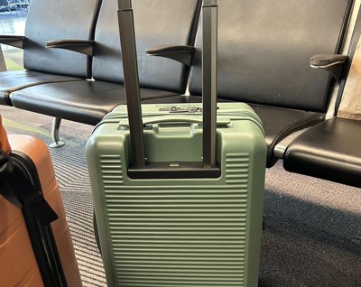 This is a solid option for a carry on. The wheel and handles are smooth. Its a good size for a carry. Slightly bigger than the usual but no so much so that itll stand out to gate agents. The color is more of a beautiful sage green than the minty colored pictured. Ive read and watched dozens of carry on luggage reviews from Away, to Monos to Travelpro, ect. This has similar features (ykk zippers, hinomoto 360 wheels, organization and compression interior) I even bought a Beis to compare in person and it is very similar with exception of the Beis being clearly taller( see pics for size comparison) Overall, a good piece of luggage. Docked a star bc of the price point which isnt much cheaper than any other quality non target luggage.
