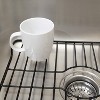 The Black Coated-Steel Large Sink Protector from Better Houseware safeguards your sink from scratches from cookware, dishes, and cutlery. It also has coated feet to protect the sink from scrapes. The sink rack protects dishes and delicate stemware, and keeps them above the draining water. It has a center opening for access to the sink’s removable drain. _