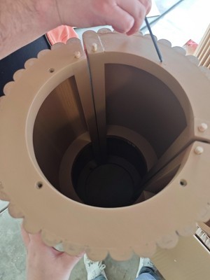 Exactly as pictured. I am not sure if the people writing negative comments had a defect but it’s beautiful and sturdy and easy to put together! Shown darker in my picture since light wasn’t coming through at that time.