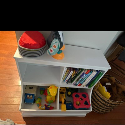 - Multi-Bin for Large Storage Space: Featuring 2 cubbies and 2 bins, this toy organizer provides ample storage space for you to arrange your children's picture booksand toys. Besides, the spacious top is ideal for displaying photo frames and plants.